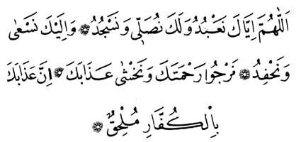 Allâhümme iyyâke na'büdü ve leke nüsallî ve nescüdü ve ileyke nes'â ve nahfidü nercû rahmeteke ve nahşâ azâbeke inne azâbeke bilküffâri mülhık.