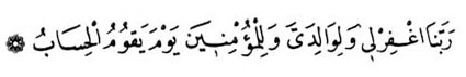 Ey bizim Rabbimiz! Beni, anamı ve babamı ve bütün mü'minleri hesap gününde (herkesin sorguya çekileceği günde) bağışla.