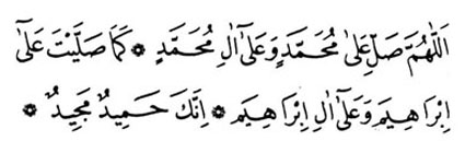 ---::: OKUNUŞU :::--- Allâhümme salli alâ Muhammedin ve alâ âli Muhammed. Kemâ salleyte alâ İbrahime ve alâ âli İbrahim. İnneke hamidün mecîd. ---::: ANLAMI :::--- Allah'ım! Muhammed'e ve Muhammed'in ümmetine rahmet eyle; şerefini yücelt. İbrahim'e ve İbrahim'in ümmetine rahmet ettiğin gibi. Şüphesiz övülmeye layık yalnız sensin, şan ve şeref sahibi de sensin.